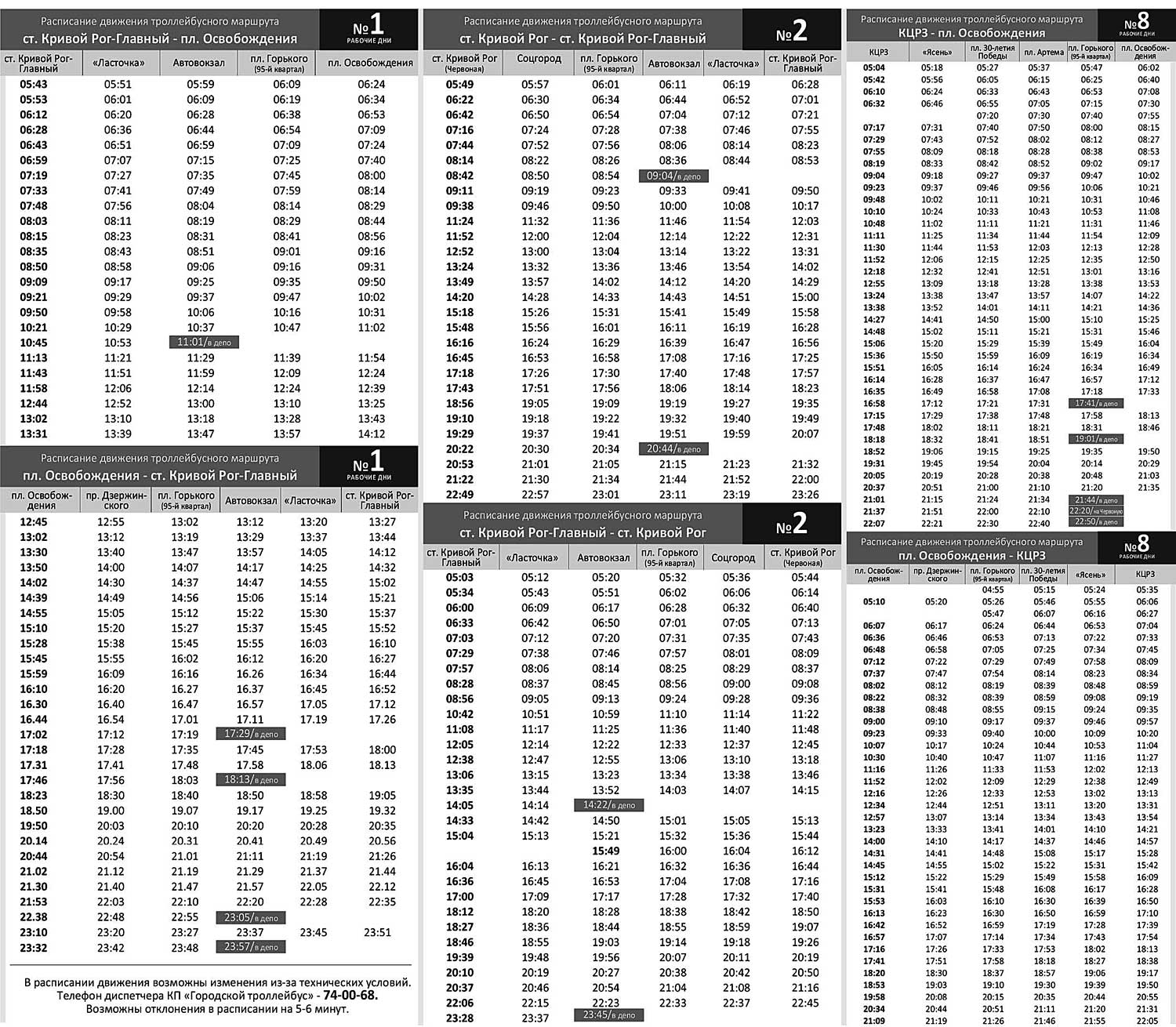 Расписание движения троллейбусов №№1, 2, 8