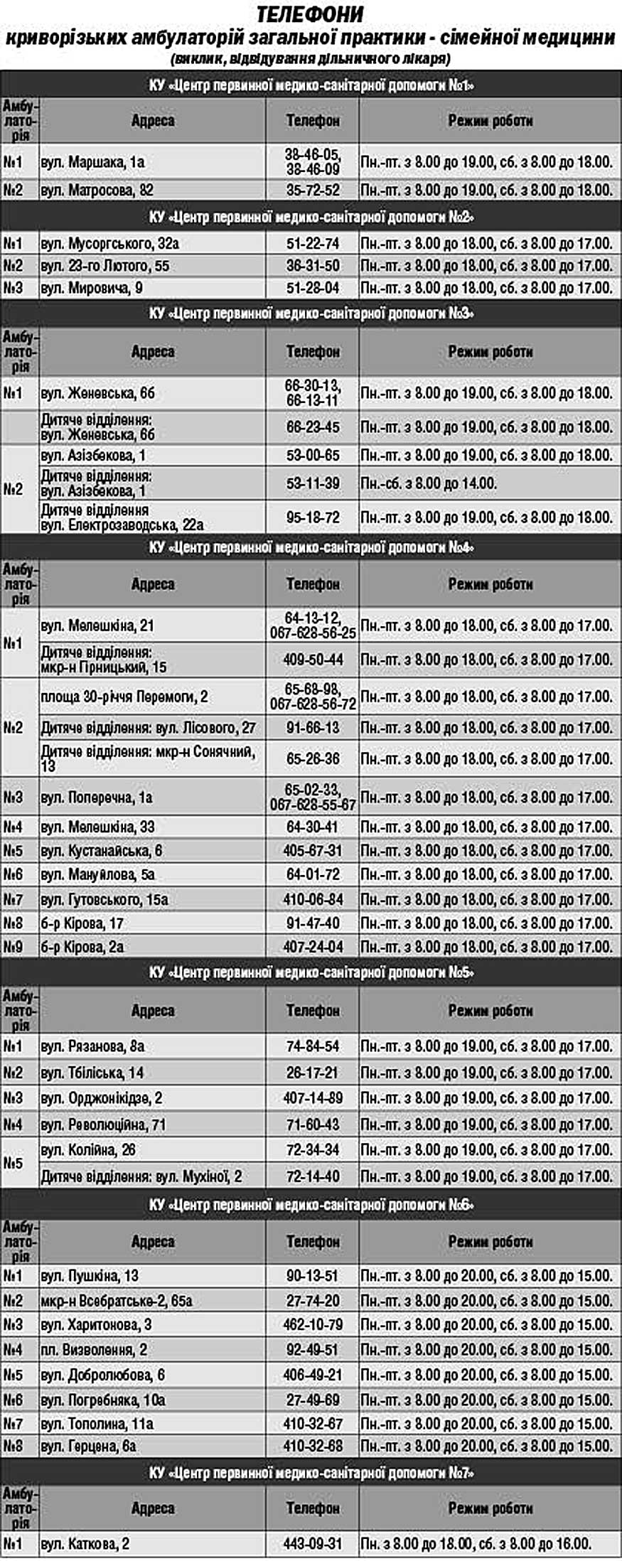 Графік надання безкоштовних консультацій міськими спеціалістами при КЗ «Криворізький центр здоров'я» на грудень 2014 року